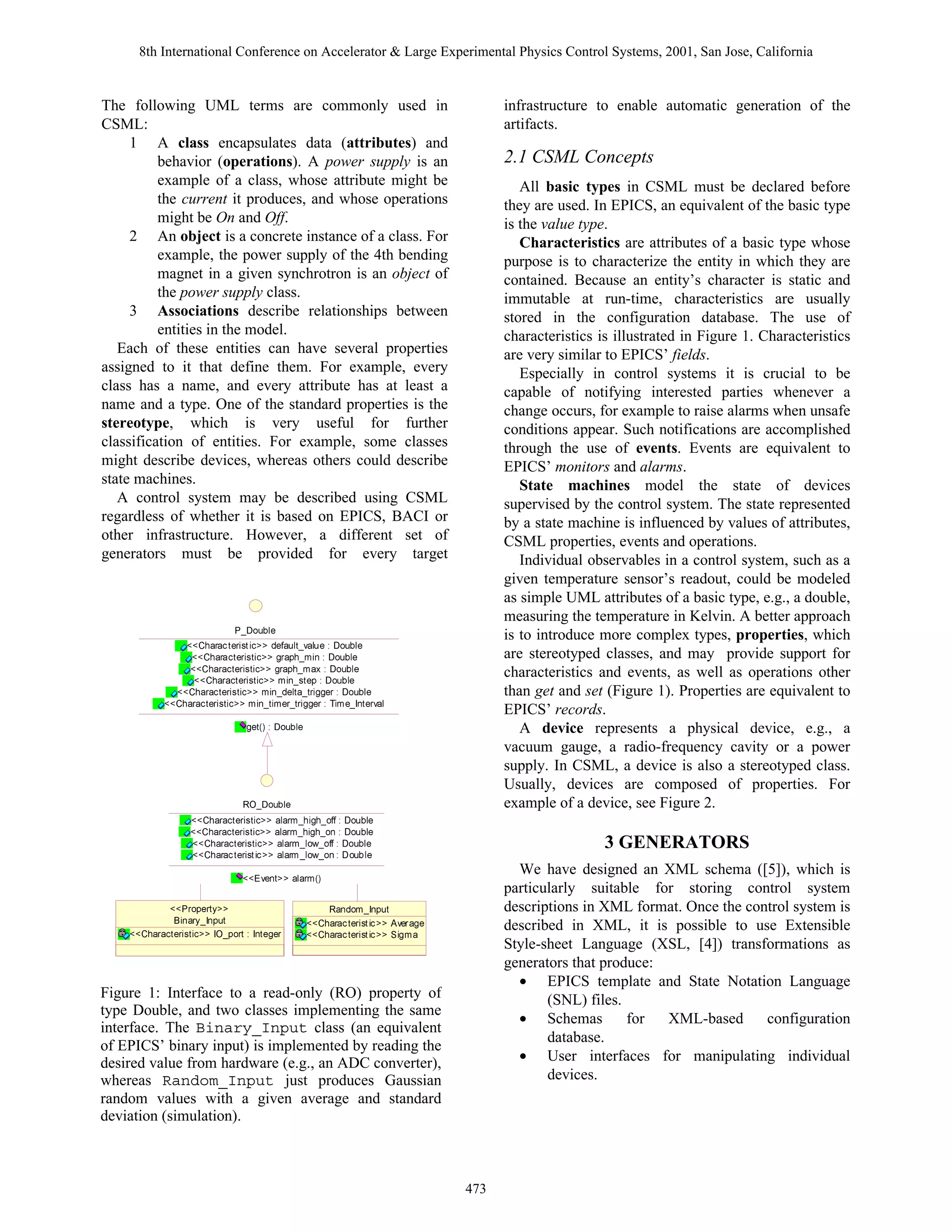 This document describes the Control System Modeling Language (CSML), which is an extension of the Unified Modeling Language (UML) for modeling control systems. CSML introduces new entities and relationships specific to control systems, such as properties to represent individual controllable points and events to represent device notifications. CSML models can be transformed into different formats using XML and XSL transformations to generate code for various control system frameworks and APIs.