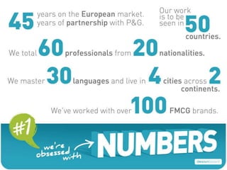 The document describes the global operations of Design Board, a creative agency. It details the locations of their offices in Brussels, Sofia, Istanbul, Cairo, Geneva, and their areas of expertise. Design Board has a long history working with prominent clients such as Procter & Gamble and Coca-Cola, and has won awards for projects like an Oriflame cosmetics identity. The agency aims to provide fully integrated brand solutions through a holistic approach informed by deep brand expertise.