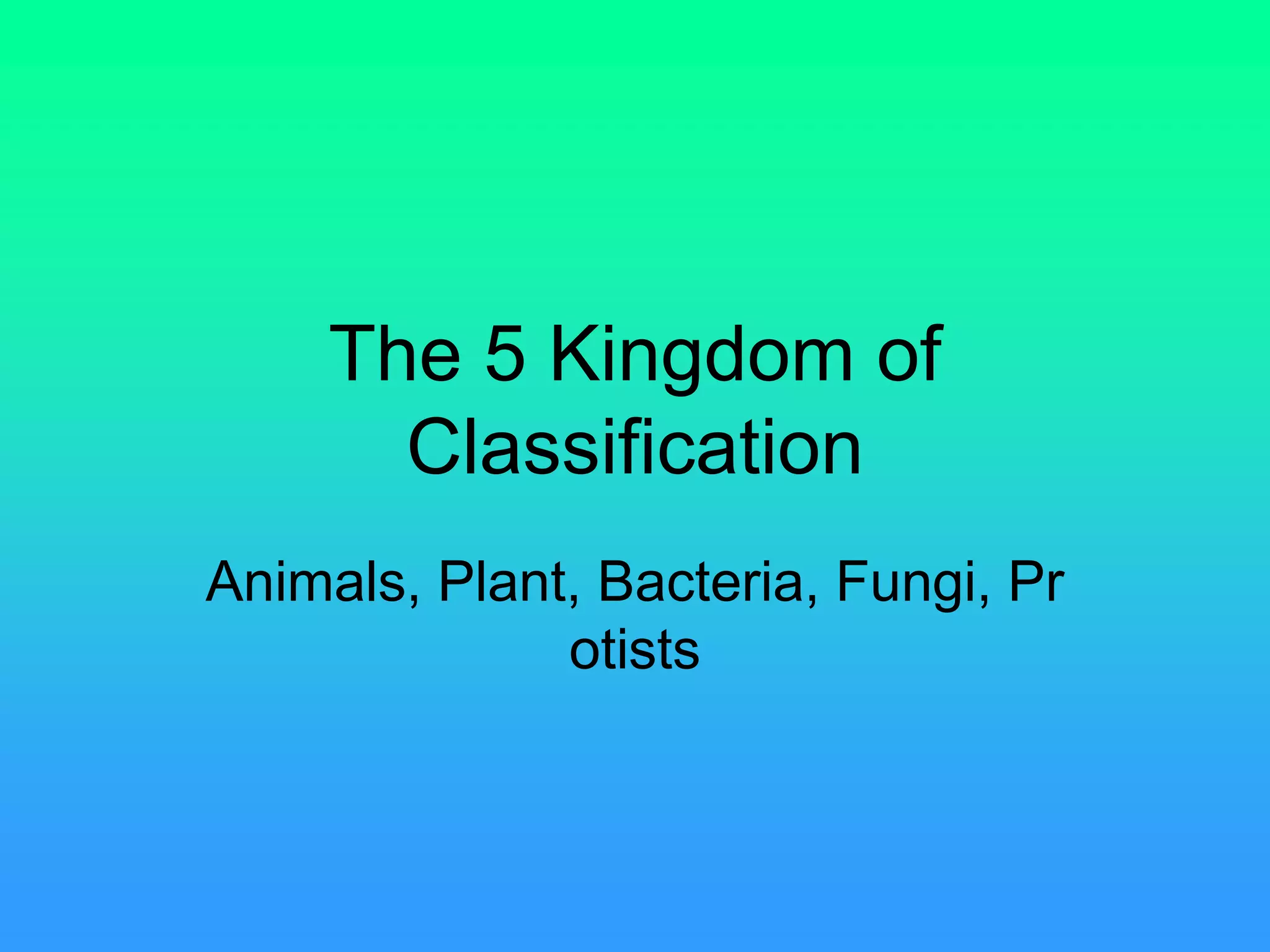 The 5 Kingdom of Classification divides living things into 5 kingdoms - Animals, Plants, Bacteria, Fungi, and Protists. Animals include over 1 million known species ranging from carnivores to herbivores and are mostly multicellular organisms divided into vertebrates and invertebrates. Plants are able to produce their own food through photosynthesis, have vascular and nonvascular forms, and transport fluids through xylem and phloem. Bacteria are single-celled organisms found everywhere that play both helpful and harmful roles and lack a nucleus. Fungi feed on dead material, lack the ability to move, are not plants, and have worldwide distribution and medicinal uses. Protists
