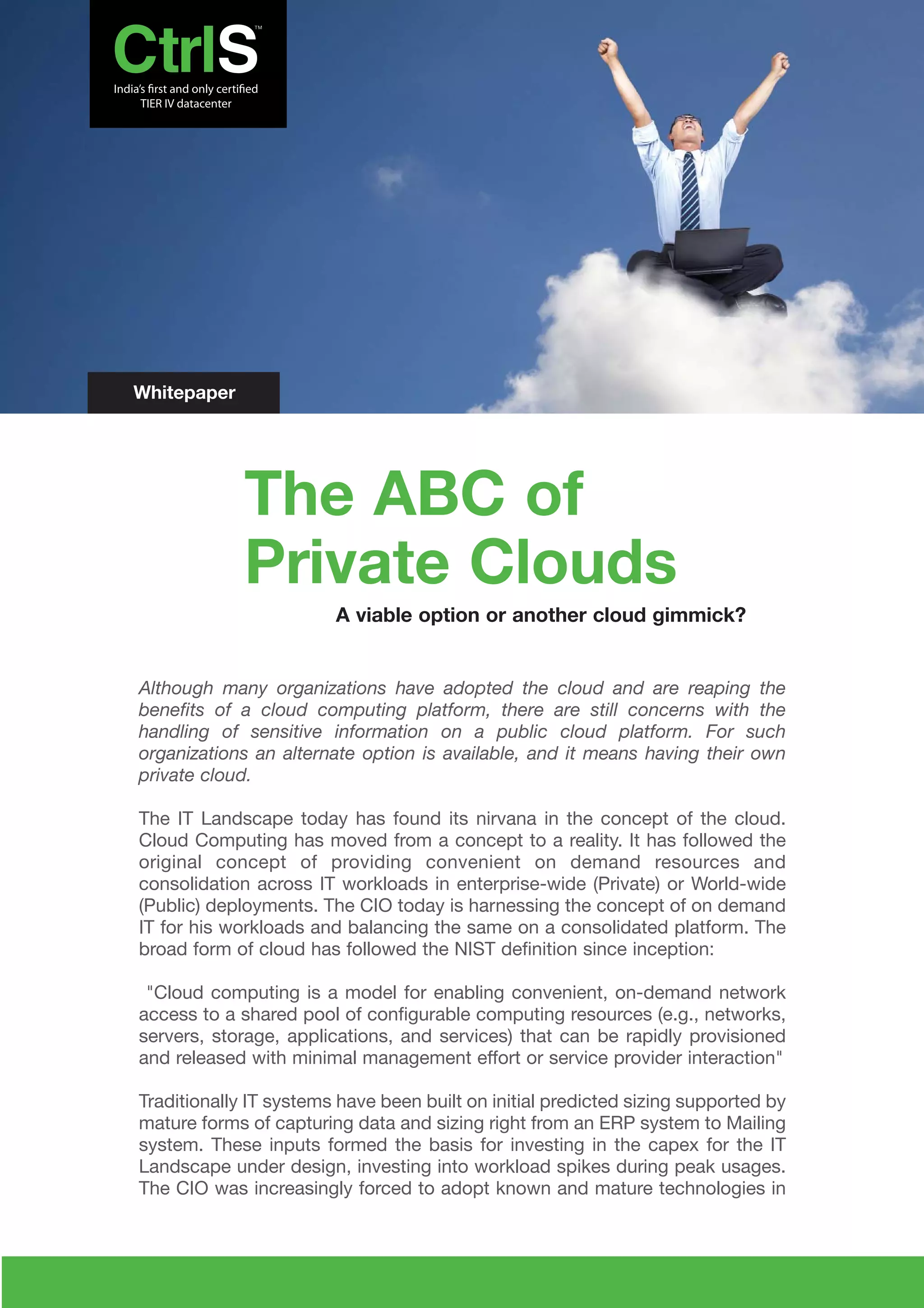 The document discusses private clouds as a viable alternative to public cloud services for organizations concerned with data security. It outlines benefits such as enhanced control over sensitive information, cost reduction, and improved business agility, while comparing private cloud infrastructure to public cloud models. Key considerations for transitioning to a private cloud include infrastructure complexity, internal IT control, and the need for effective operational frameworks.