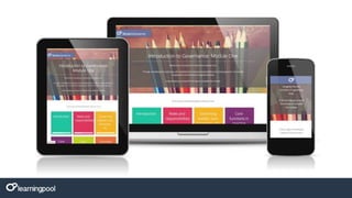 This document outlines a revolutionary e-learning approach using open source development with 45 interactive components for greater flexibility. It provides an online content builder for members of Learning Pool to create content. The approach was shortlisted as the 'Most Innovative New Product' and involved pilot collaborations, assessments, support, and technology improvements from 2014 to 2016 including weekly webinars and virtual content jams.