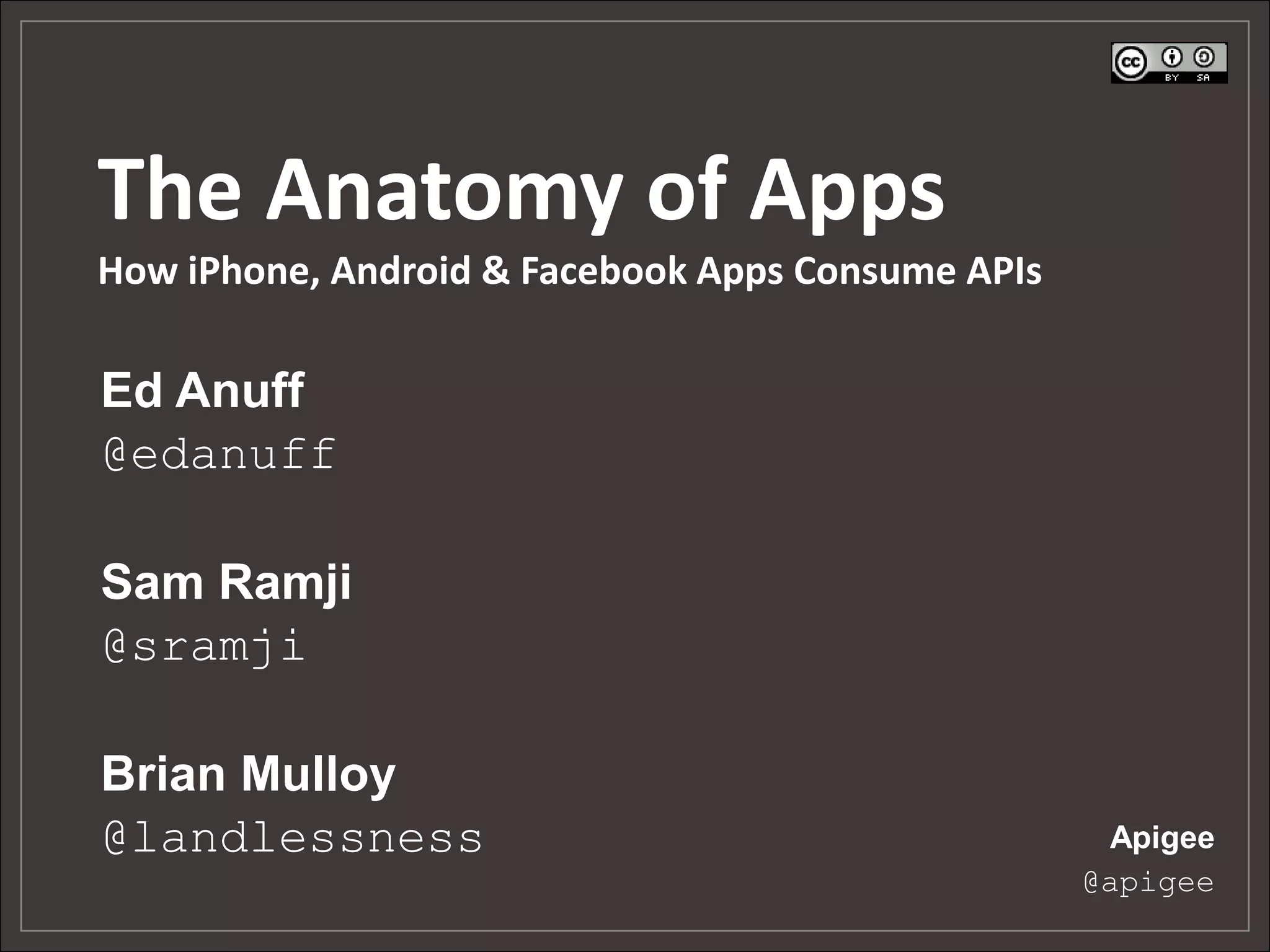 The document discusses the anatomy of applications across iPhone, Android, and Facebook, focusing on how they consume APIs. It provides code snippets and examples for building apps, handling requests and responses, and dealing with data parsing and caching. Additionally, it highlights authorization techniques, specifically using OAuth 2.0, and includes resources for further learning on APIs and their integration into applications.