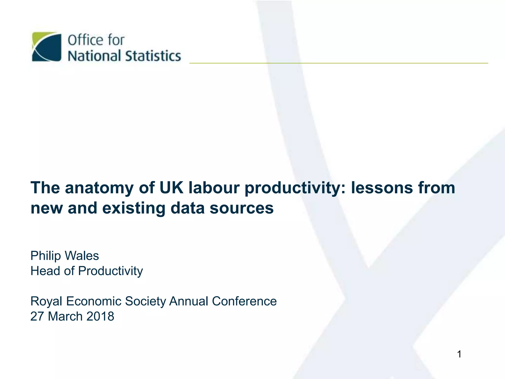 The document discusses the challenges of UK labor productivity, highlighting a significant productivity gap and disparities among businesses. It presents new aggregates and blends of existing data to provide insights into productivity performance and its drivers, including foreign direct investment and management practices. The analysis indicates a need for more detailed understanding and data to inform policy and improve productivity outcomes.