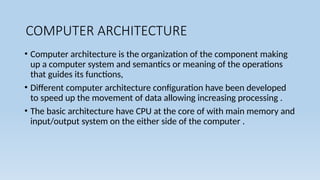 • Computerarchitecture is the organization of the component making