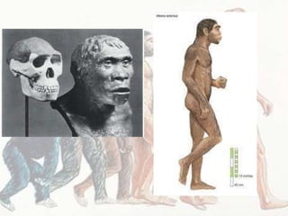 The document discusses the origins and classifications of early hominids, particularly australopithecines, which lived in Africa between 4 and 2 million years ago. It outlines the different species within the australopithecus genus and their key characteristics, as well as the emergence of the homo genus, including species like homo habilis, homo erectus, and homo sapiens. The document also highlights early hominid cultures, their tool-making traditions, and lifestyle practices.