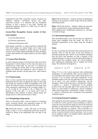 The document discusses Automatic License Plate Recognition (ALPR) technologies, emphasizing the challenges posed by various environmental factors and plate characteristics that complicate detection and recognition. It outlines a systematic survey of existing ALPR methods, detailing the core modules of the ALPR system: license plate detection, character segmentation, and character recognition. The paper also proposes a methodology for improving recognition accuracy and efficiency through image processing and feature extraction techniques.