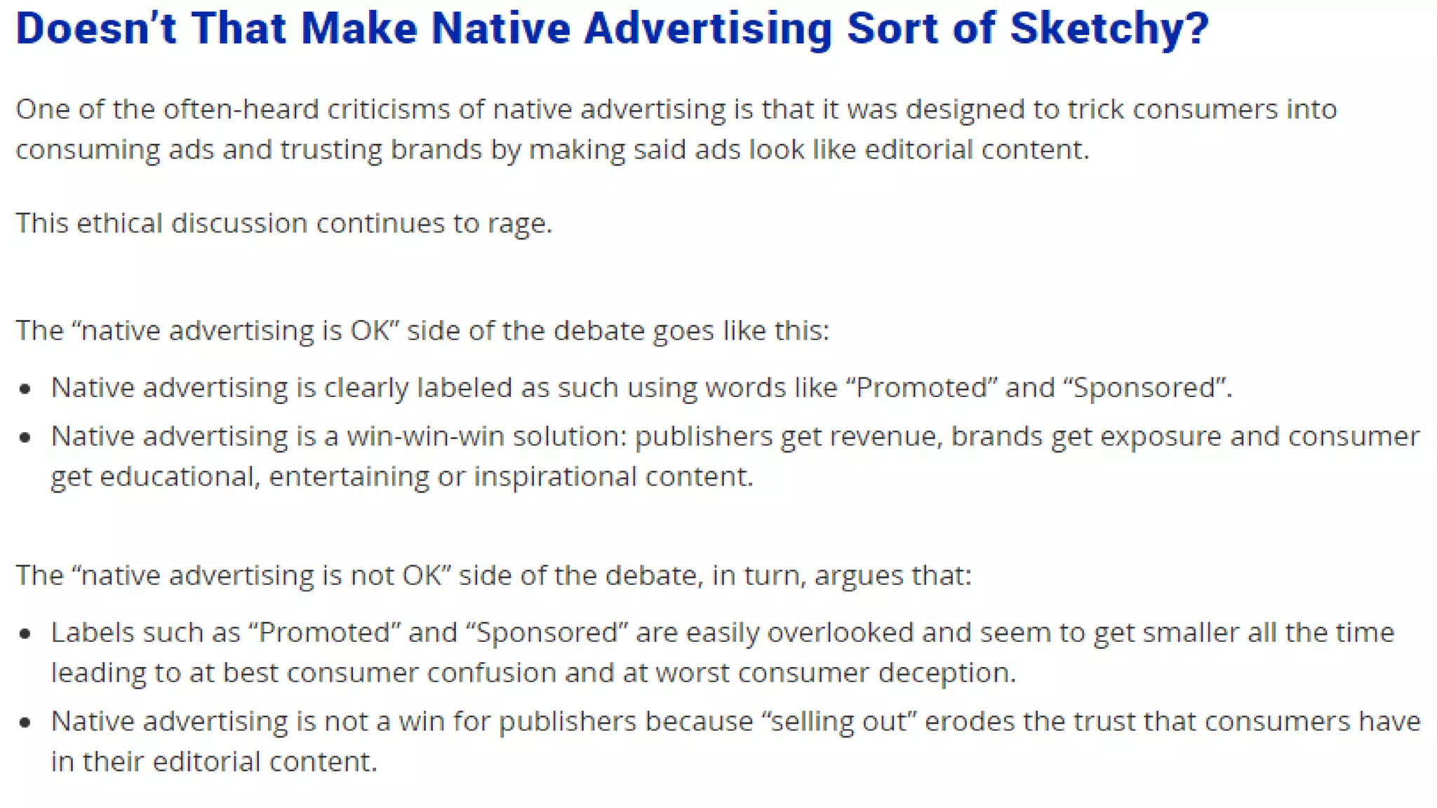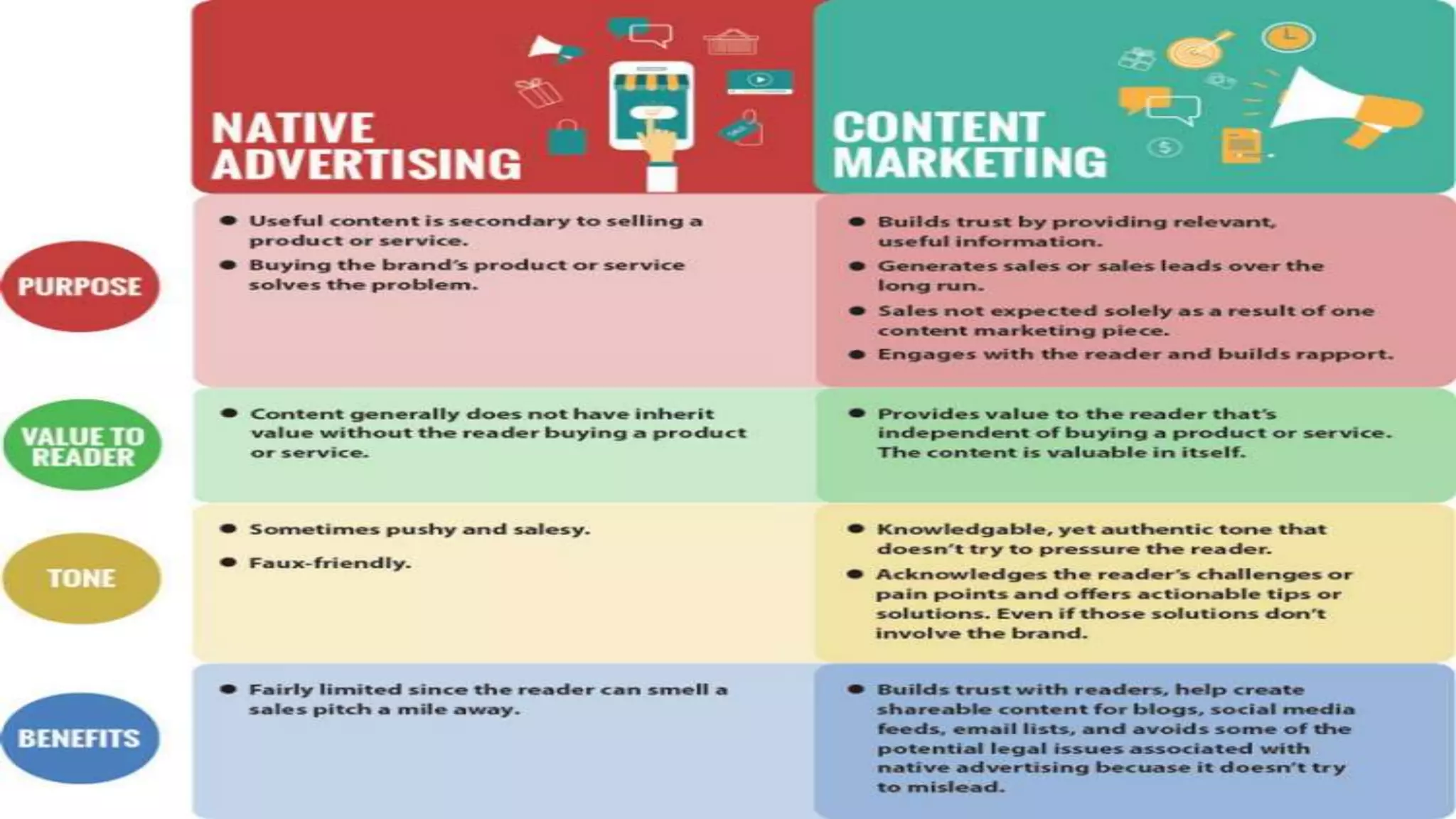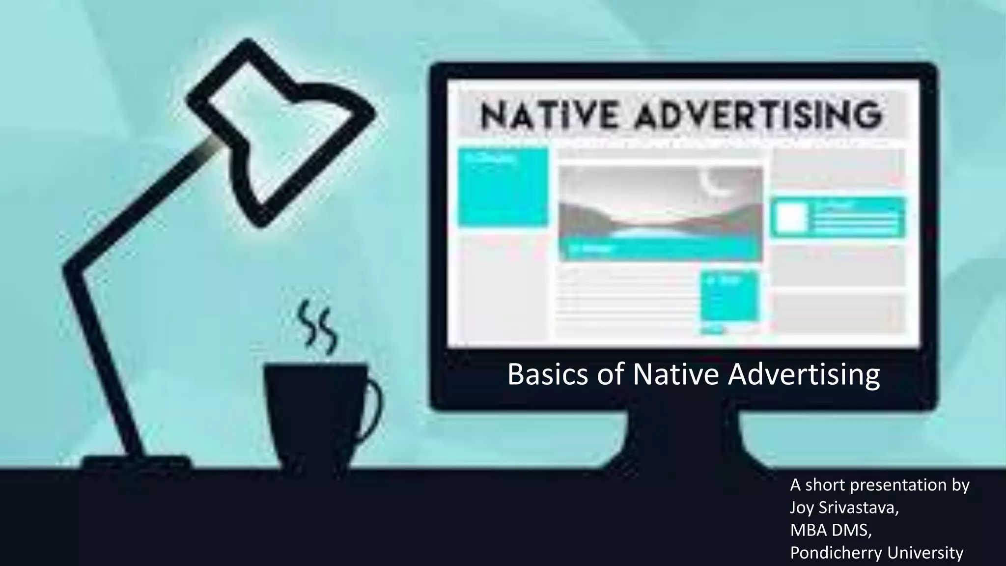 Native advertising involves creating paid content that resembles a publication's normal editorial content in order to promote products or services. It is more effective than traditional digital ads because it does not look like an advertisement. There are three main types of native advertising: sponsored content, recommended content, and in-feed social ads. Native ads are effective because they appear where readers are already consuming content, attract more time and attention than mobile display ads, and increase brand recognition if created with readers in mind. While native advertising is growing in popularity and predicted to make up over half of mobile ad spending by 2020, disadvantages include potential negative reader experiences if not clearly disclosed as ads and lack of SEO benefits.