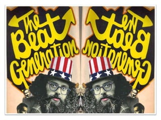 The Beat Generation were a group of American writers who emerged in the 1950s in response to World War II and rejection of prevailing middle-class values. Key members included Allen Ginsberg, whose poem Howl criticized restrictive American assumptions, and Gary Snyder, whose work resisted cultural authority. The Beat poets wrote in a spontaneous style with free verse and sought to bring poetry to the streets. Their work was influenced by Romantic poets and jazz music and explored themes of politics, Buddhism, and social commentary.