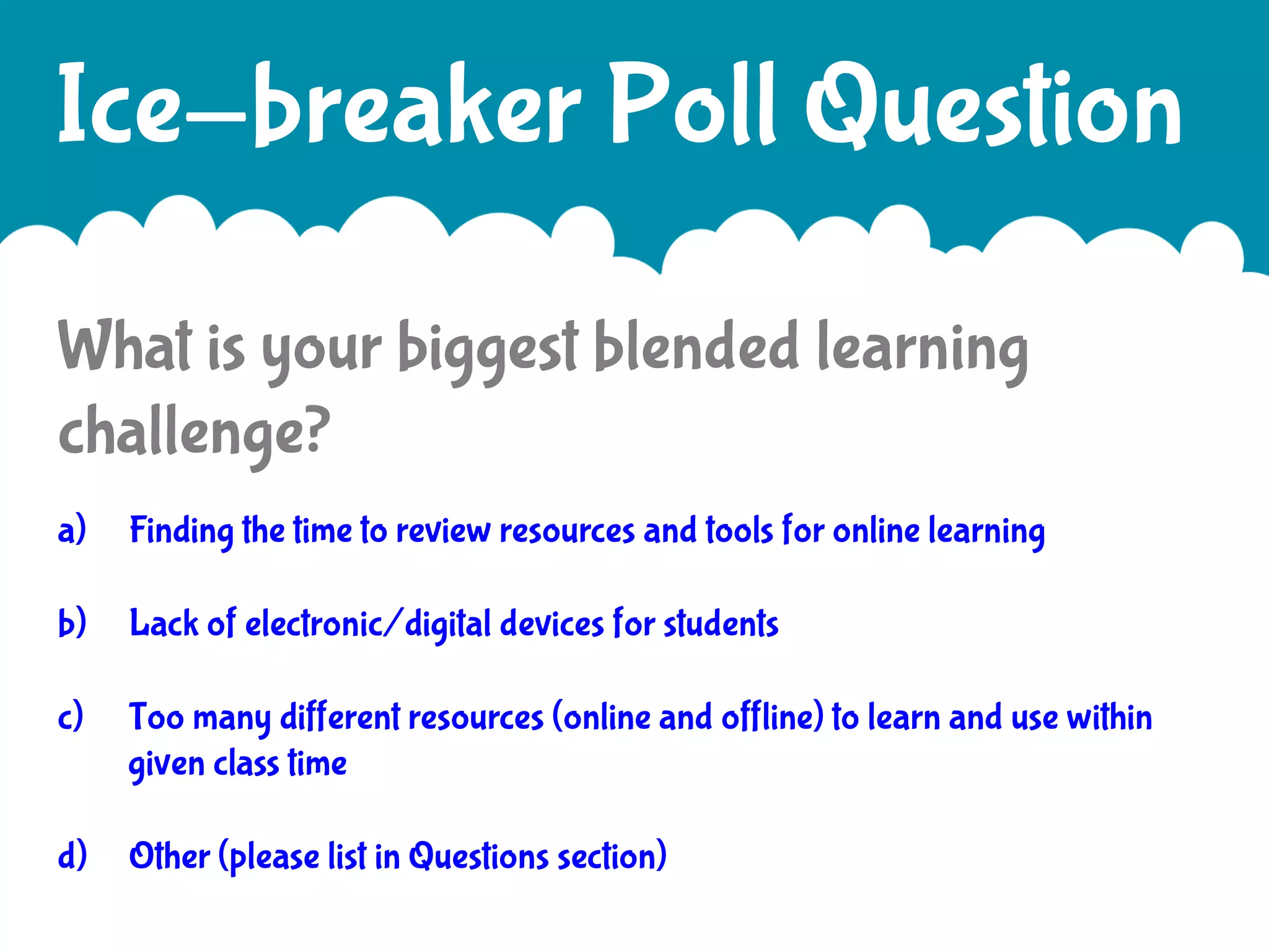 The document provides guidance on beginning a blended learning math model. It recommends taking a three step approach: 1) Establishing goals for student learning and instruction, 2) Choosing a blended learning model based on available resources, and 3) Evaluating progress and achievement. Several examples of blended learning models are described, including station rotation, lab rotation, flipped classroom, and flex models. The importance of aligning any blended learning model with established instructional goals and assessing student needs is emphasized.