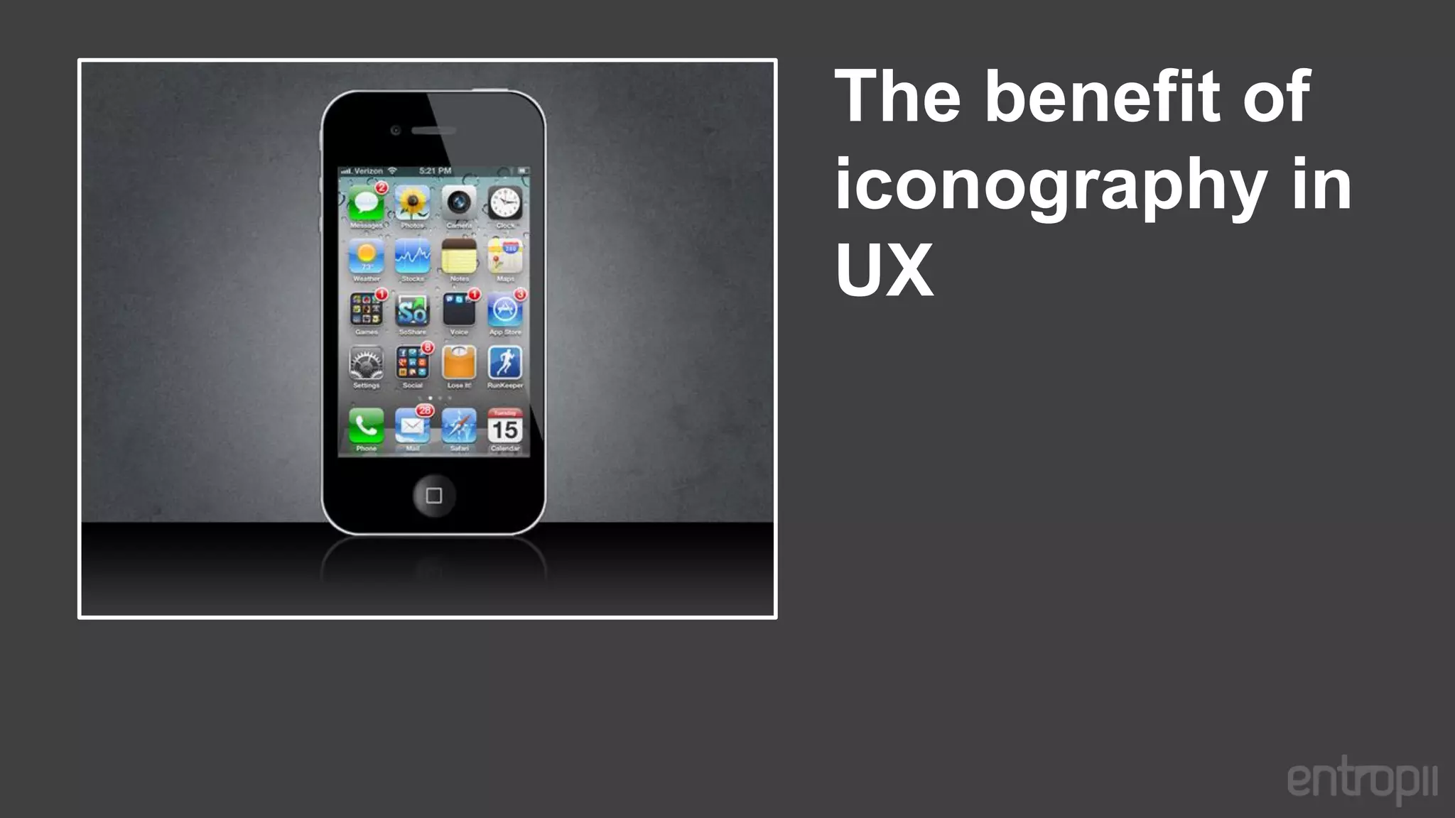 The document discusses the benefits of using icons in user experience (UX) design. It provides examples of how icons: