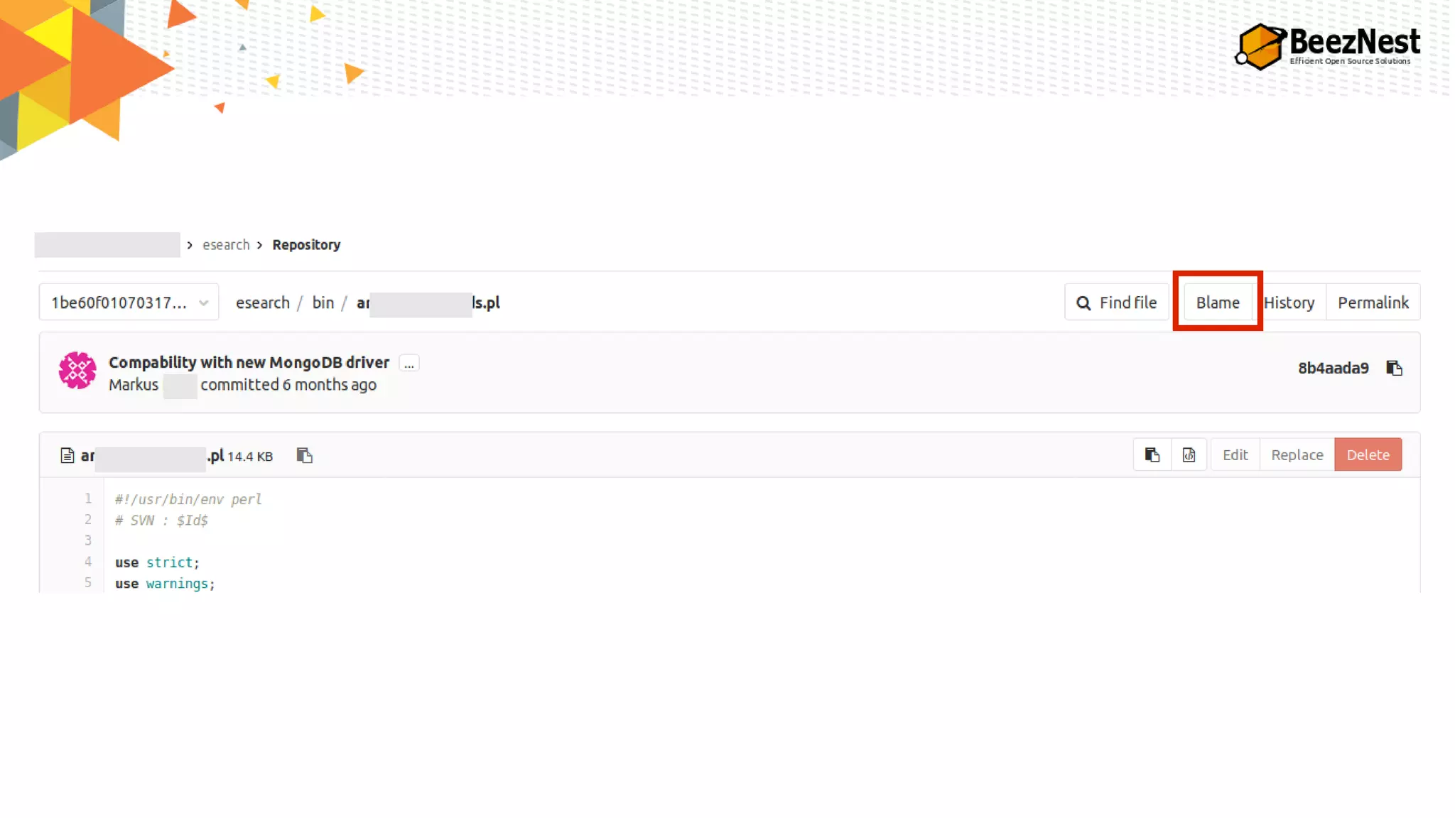 Click the “Blame” button