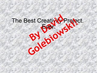 The document discusses creativity from the perspective of the author, David Golebiowski. It describes creativity as looking at things and seeing they are incomplete, and trying to complete them in innovative ways. The author recounts personal experiences with creative projects in school and hobbies, such as making a rap music video about Pride and Prejudice for a class and taking photographs. The author emphasizes creativity requires focus and goals to achieve outcomes.