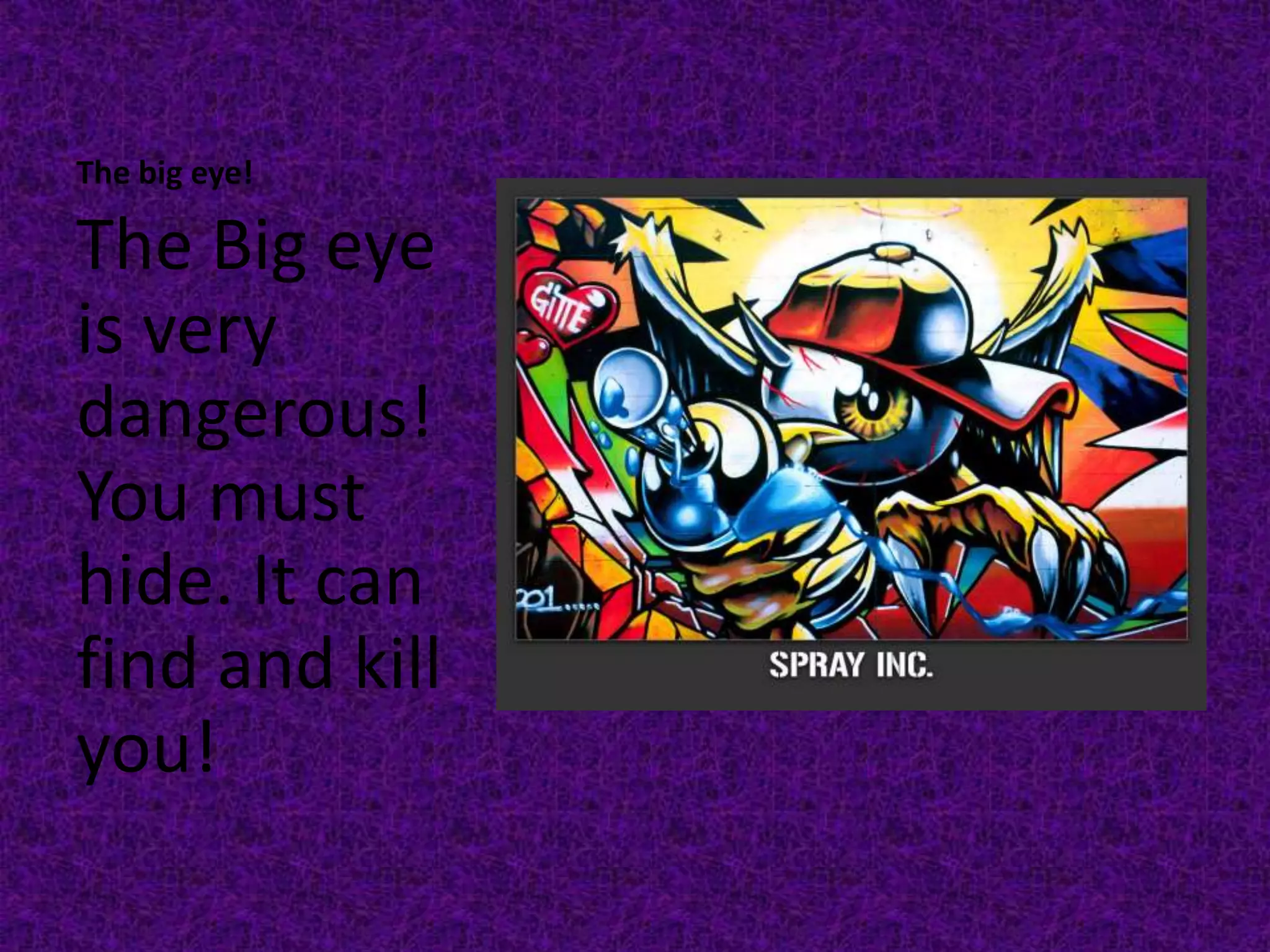 The document describes several short passages about different subjects including a big eye that can find and kill, a black, red and white painting, a flying house on a black bird, a choice between amazing worlds or amazing worlds, an amazing wall graffiti, and light words with magic words.