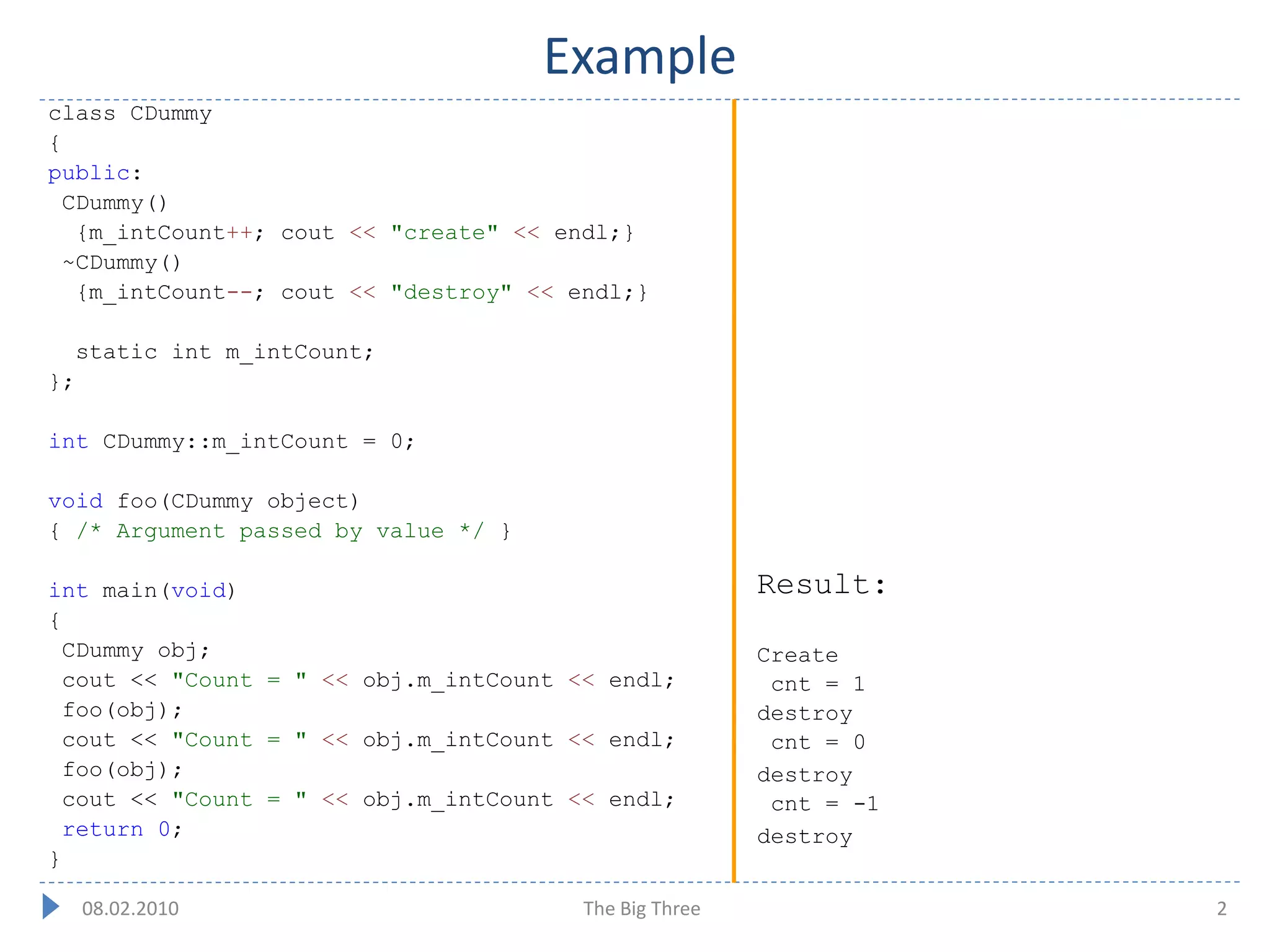 The document explains the concept of special member functions in C++, including the default constructor, copy constructor, copy assignment operator, and destructor. It emphasizes the 'Rule of Three,' stating that if a class defines any of these functions, it should likely define all three. Additionally, it provides examples of function overloads and class declarations related to these concepts.