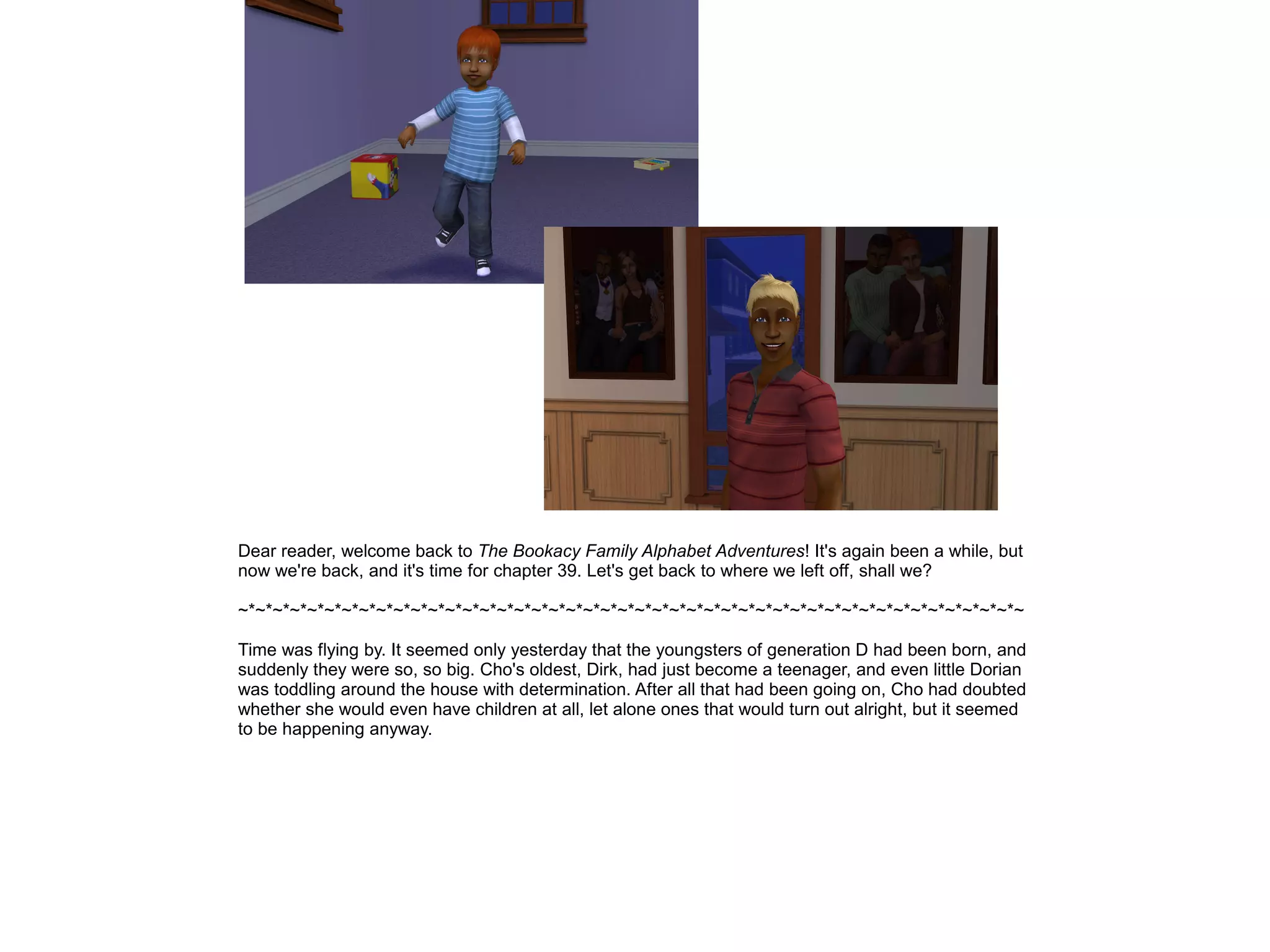This document provides an update on the Bookacy family, catching the reader up after some time away. Cho is pregnant again and enjoying time with her family, while also preparing for potential future threats from Salahuddin Chamcha with the help of their long-time security advisor Sunny Straight. The family continues with everyday activities like school, work, hobbies and enjoying each other's company while keeping vigilant about security.