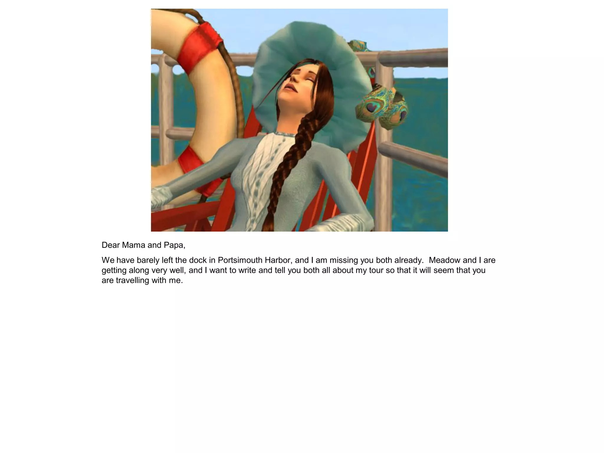 Phily writes a letter to her parents describing her trip to France with her friend Meadow Thayer and Meadow's parents. Some key details include: