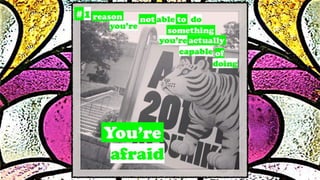 1) It discusses overcoming fear by understanding that any consequence is not worth the paralyzing feeling, and encourages being a "valiant tiger" instead of a "scaredy cat."