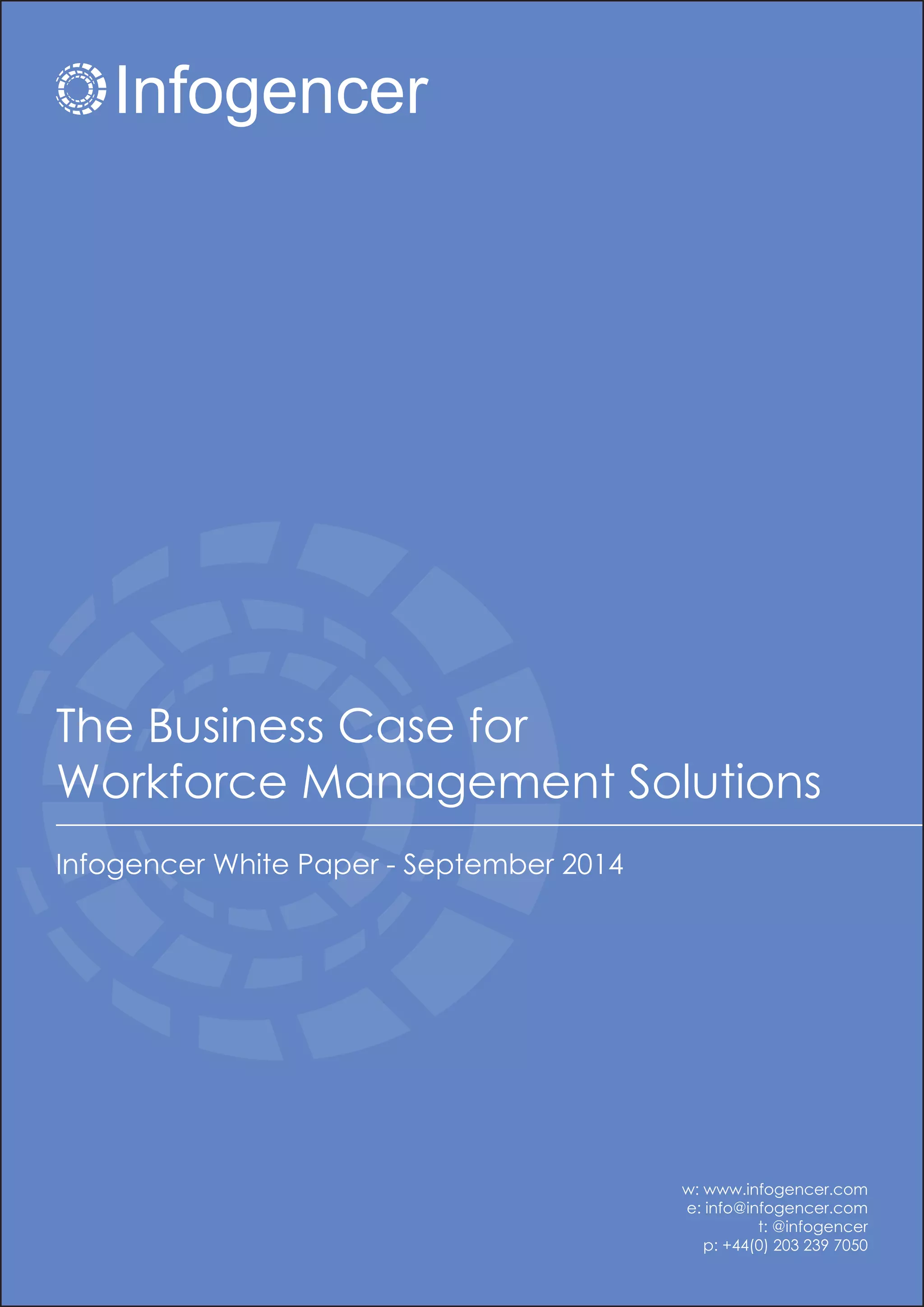 The document discusses the increasing necessity for dedicated workforce management solutions as organizations seek to enhance control and visibility over their workforce processes, driven by evolving HR roles and market pressures. It outlines common challenges in workforce management, such as optimizing efficiency, minimizing risks from data inaccuracies, and responding to demand variability. Additionally, it argues that effective workforce management practices can significantly reduce operational costs and improve overall organizational performance.