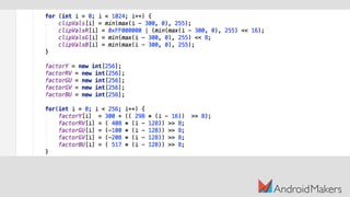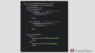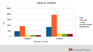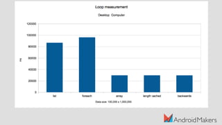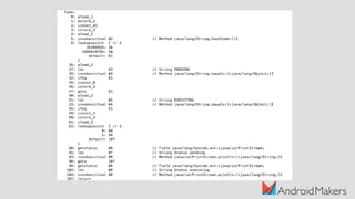 The document discusses the Java compilation process and its differences from other compiler optimizations, highlighting the use of javac, dex, and the Impact of the Java Virtual Machine on performance. It notes that Java bytecode is stack-based and less performant compared to register-based approaches used by other languages. The presentation also touches on modern tools like D8/R8 and Just-In-Time (JIT) compilation that enhance Java's execution efficiency.