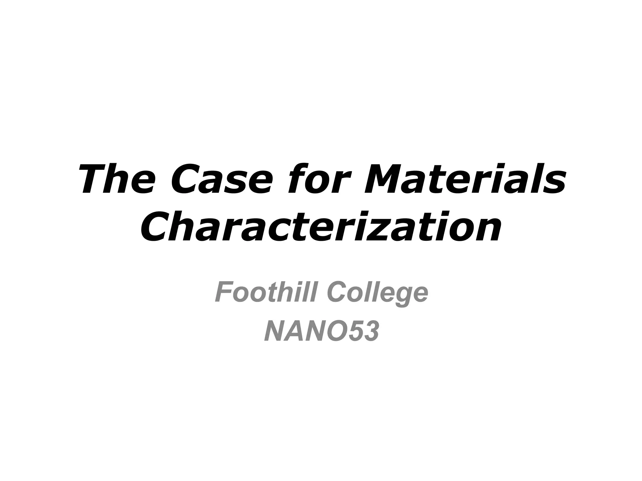 1. The document discusses the importance of materials characterization for understanding nanostructures, quality assurance, and process optimization.