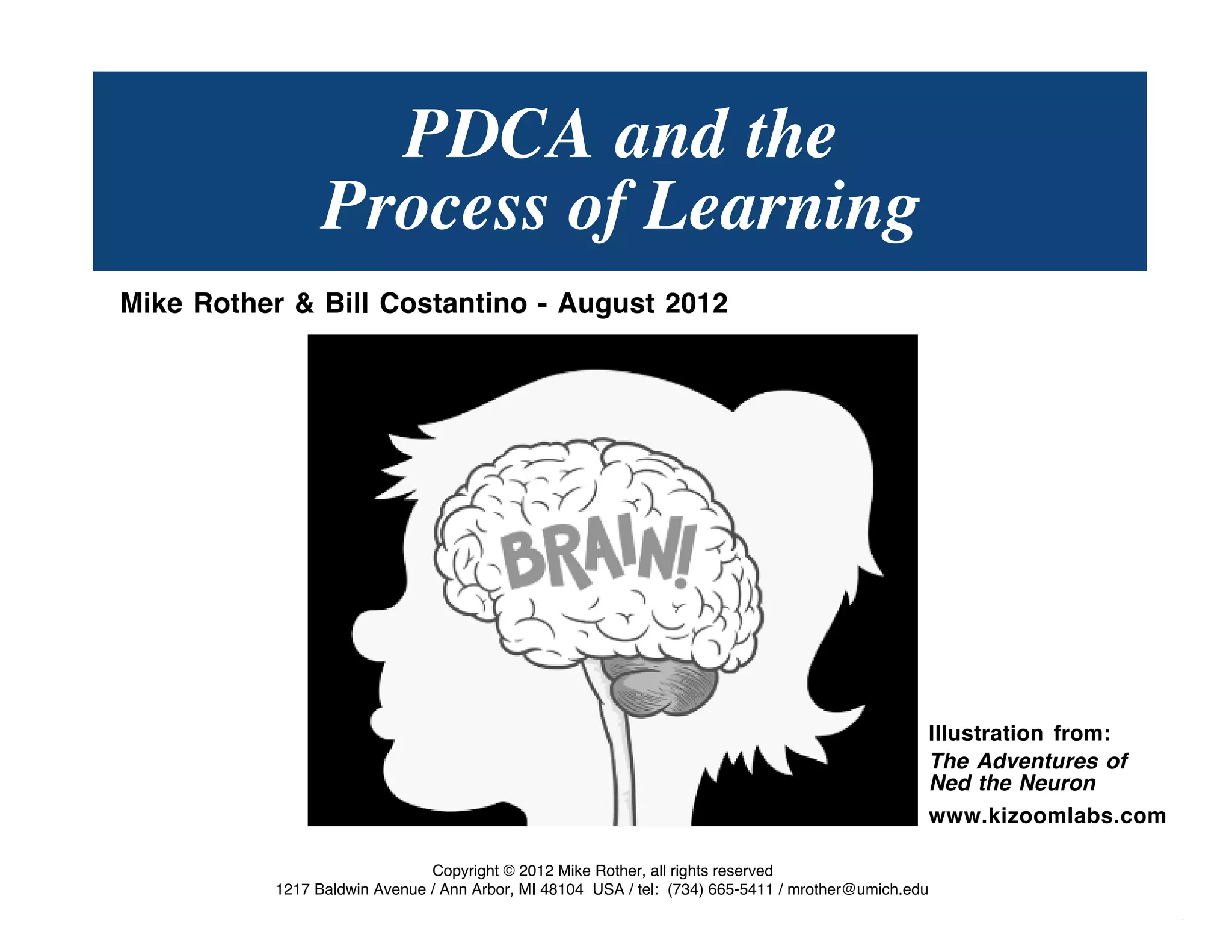 The document discusses the Plan-Do-Check-Act (PDCA) cycle as a framework for continuous learning and improvement. It explains that PDCA mirrors the natural human processes of planning, taking action, evaluating outcomes, and making adjustments. When results differ from predictions, it creates an opportunity to learn something new. The document argues that explicitly practicing PDCA allows one to systematically incorporate continuous learning into business operations and everyday life, like Toyota has done through its improvement katas.