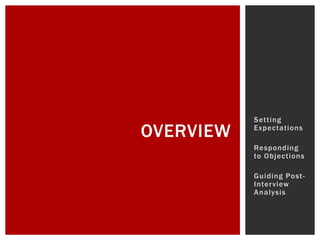 The document discusses the historical and contemporary issues surrounding employee selection processes, focusing particularly on the effectiveness of structured interviews versus unstructured ones. It highlights the lack of adherence to structured methods among organizations and outlines common objections from hiring managers regarding the perceived inflexibility and ineffectiveness of structured interviews. The document emphasizes the importance of validation studies to demonstrate the correlation between selection procedures and job performance outcomes.