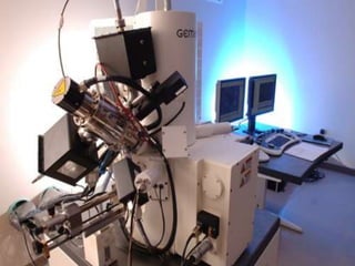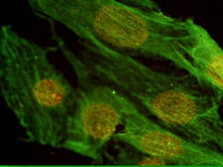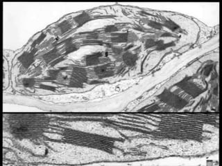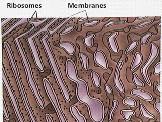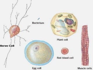 The document discusses microscopy and cell structure. It begins by describing different types of microscopes used to study cells, including light and electron microscopes. It then provides a brief history of cell discovery, including early observations by Hooke, van Leeuwenhoek, and the formulation of the cell theory. The rest of the document details the structures and organelles found within plant and animal cells, including the nucleus, mitochondria, chloroplasts, endoplasmic reticulum, Golgi apparatus, lysosomes, vacuoles, and cytoskeleton. It explains the functions of these various organelles that allow cells to carry out life's processes.
