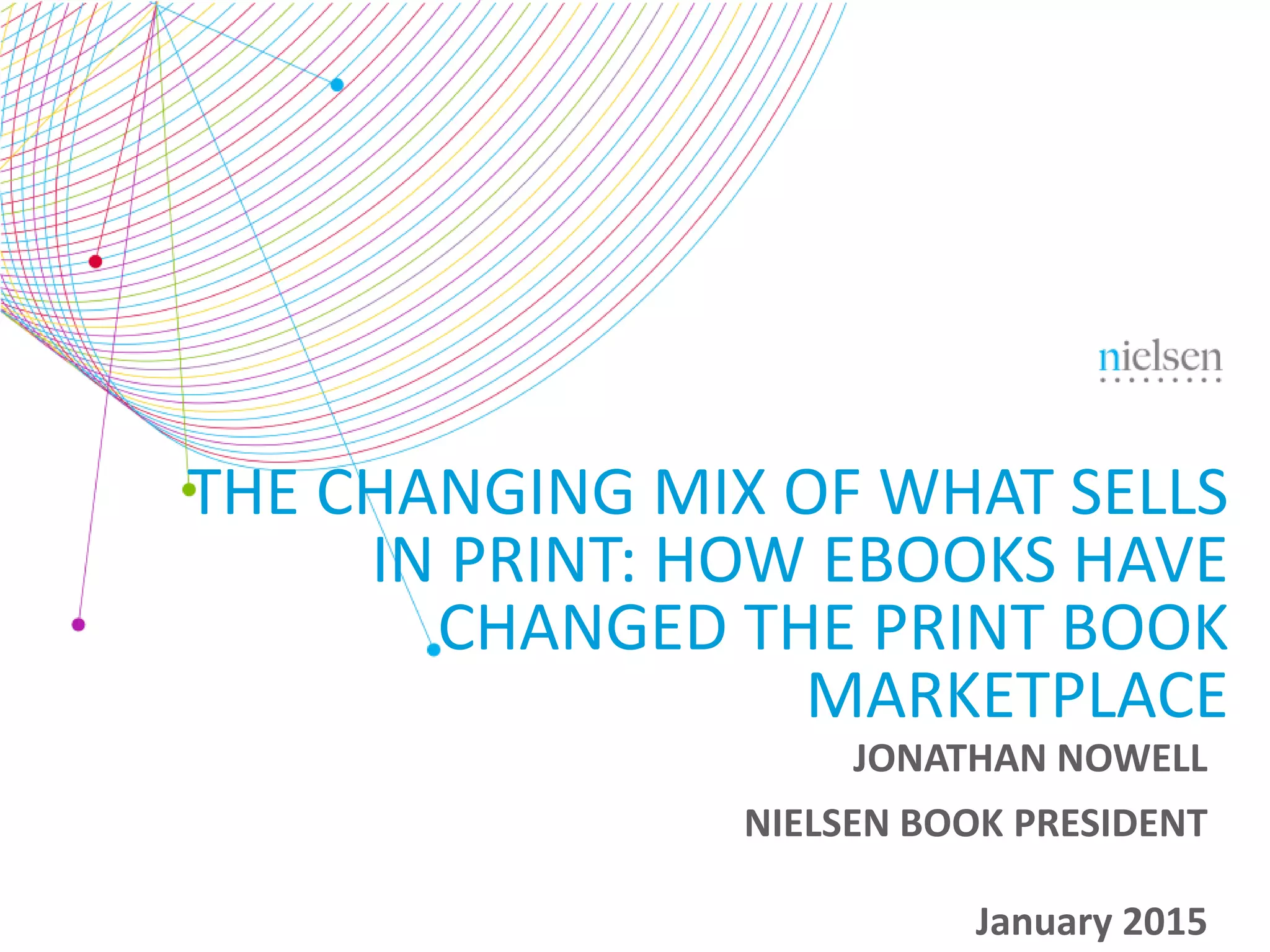 The document discusses how ebooks have impacted the print book marketplace, highlighting significant shifts in genre shares and sales trends across fiction, non-fiction, and juvenile categories. It presents data indicating a rise in juvenile book sales while adult fiction has faced a decline, particularly in fantasy genres. Additionally, it outlines the future of bookstores, suggesting a focus on creating inspiring and engaging environments.