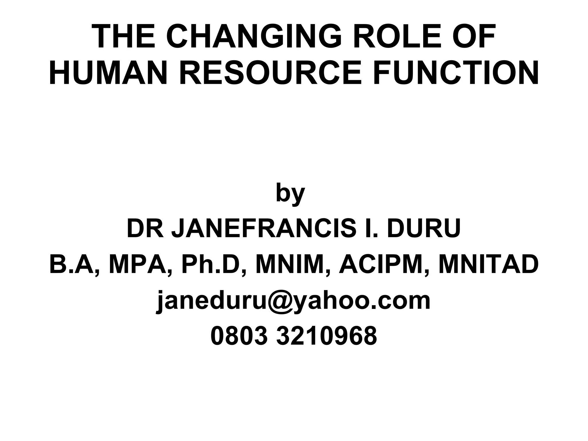 The document discusses the changing role of human resource management from operational to strategic. It outlines four new roles for HR: strategic partner, employee advocate, administrative expert, and change agent. The roles require competencies like leadership, business knowledge, and strategic thinking. Factors driving this change include globalization, technology, changing workforce demographics, and the nature of work. The implications are that HR must have both administrative and strategic skills to align HR with business goals.