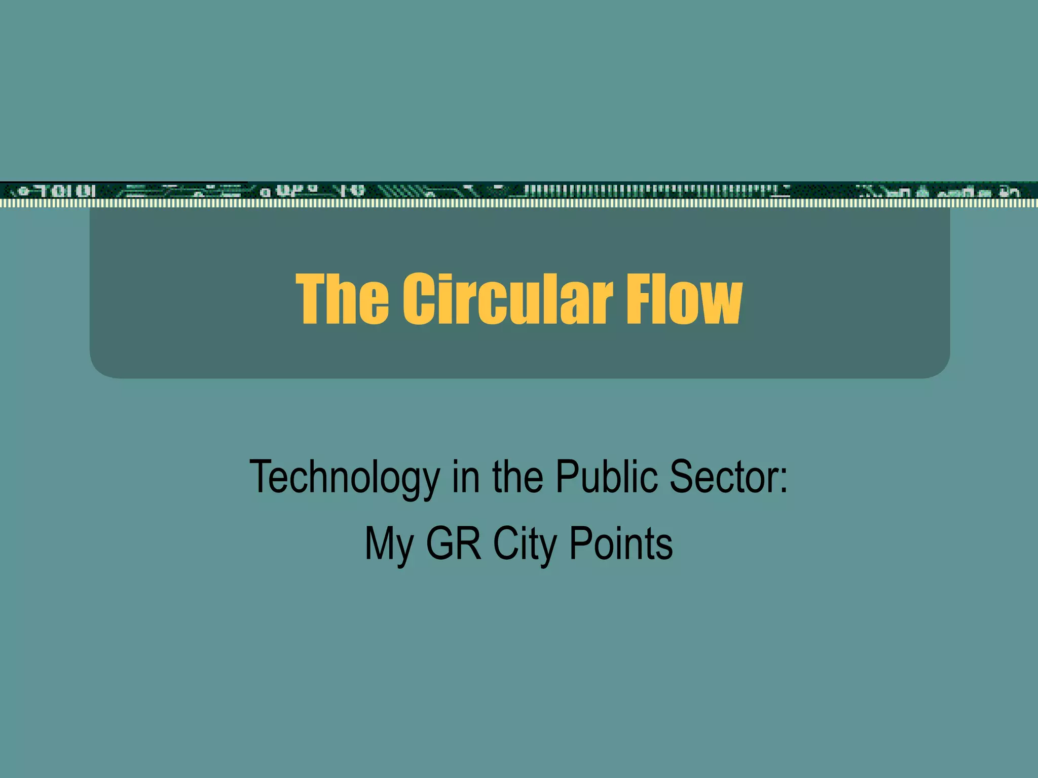 The document describes MyGRCityPoints, a program launched by the city of Grand Rapids that rewards citizens with points for community engagement activities that can be redeemed with local businesses. The program aims to create a circular flow of benefits between citizens, local non-profits and businesses by linking community involvement with economic development and civic participation. It will roll out features over time using web and mobile technology to track points for activities like recycling, volunteering and shopping locally.