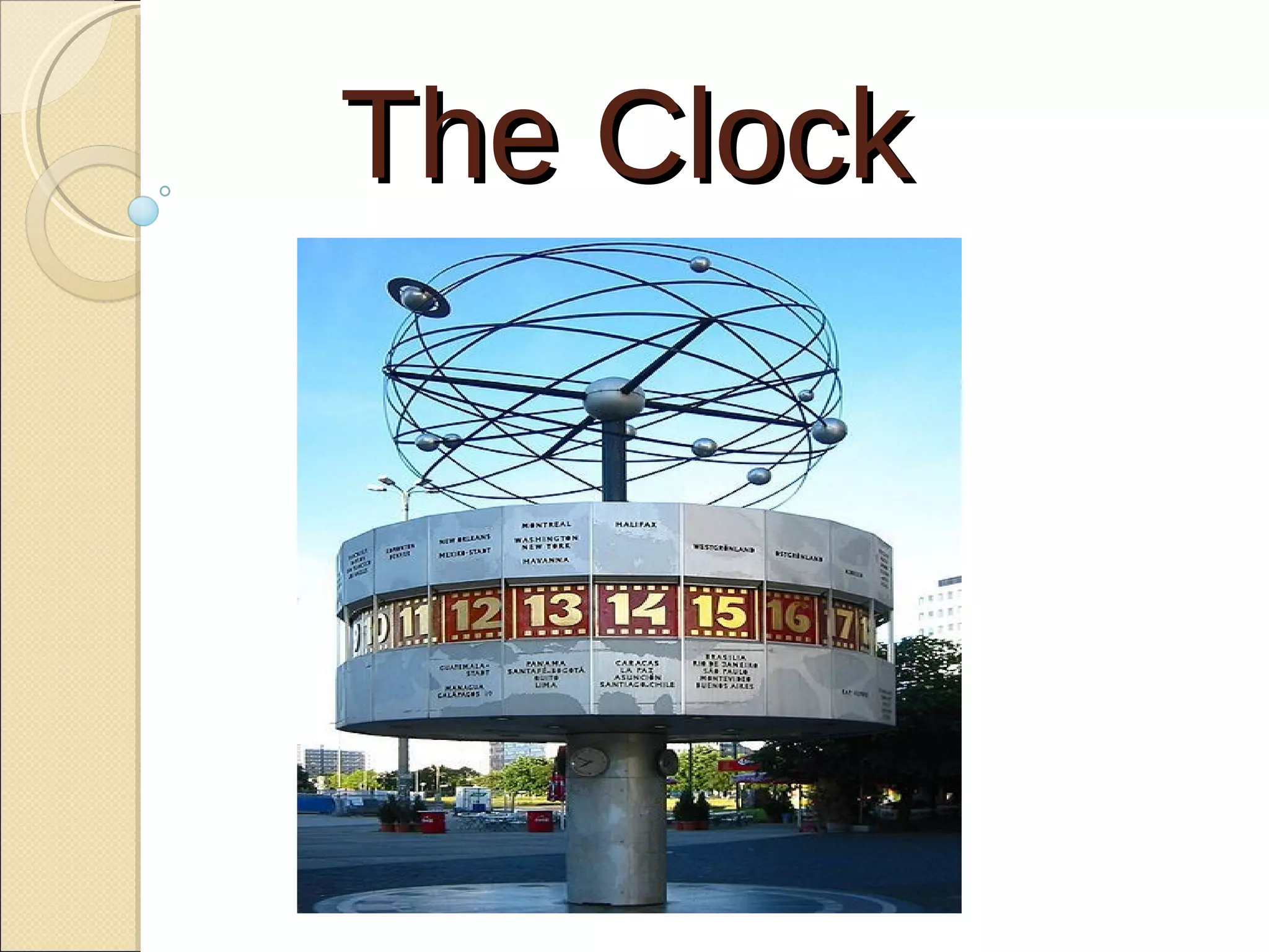 The document discusses the history and types of clocks. It defines a clock as an instrument used to tell time. Ancient Egyptians were the first to use sundials, while the first person to construct a pocket clock was Pedro Bell. There are different types of clocks including wristwatches, chronometers, pocket clocks, and electronic clocks. Water clocks and sundials were early methods to measure the passage of time before more modern clock designs.