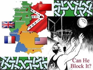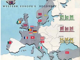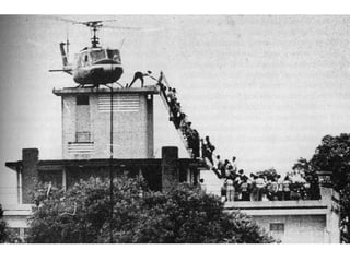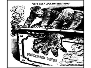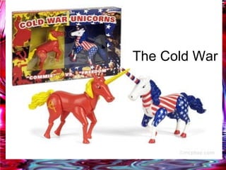 The document provides an overview of the Cold War between the United States and Soviet Union from its origins after World War 2 through the collapse of the Soviet Union in the early 1990s. It discusses the ideological tensions between capitalism and communism that fueled the conflict and summarizes key events including the Truman Doctrine, Marshall Plan, Berlin Airlift, NATO alliance, arms race, space race, Cuban Missile Crisis, Vietnam War, and fall of communist governments in Eastern Europe.