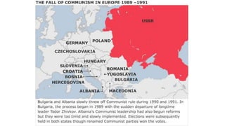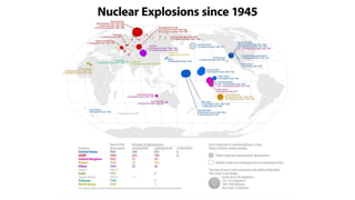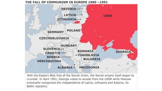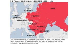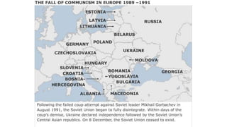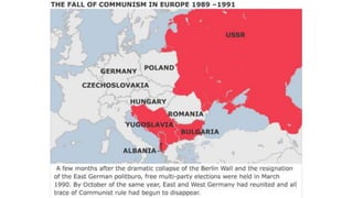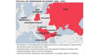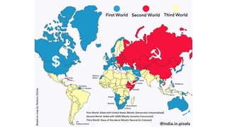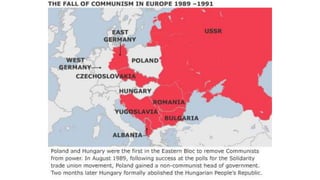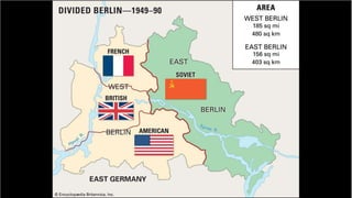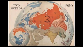 The document provides a detailed overview of major global political and military events from 1945 to 1979 during the Cold War era. Some key developments include: the division of Europe and Germany after WWII; the founding of international organizations like the UN and NATO; decolonization movements and independence struggles across Asia and Africa; conflicts in Korea, Vietnam, and other regions influenced by superpower rivalry; escalating arms races; and periods of both increased tensions and attempts at détente between the U.S. and USSR. The timeline traces the spread of communism and rise of new nations amid ongoing ideological clashes and proxy wars between Western capitalist and Eastern communist blocs during this pivotal period.