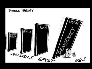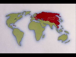 The Cold War lasted from 1945-1991 between the United States and the Soviet Union. During this time, communism spread to countries like Russia, China, Korea, and Cuba. The two superpowers engaged in proxy wars and an arms race without direct conflict. Key events included the Berlin Blockade, Cuban Missile Crisis, and Vietnam War. Technological developments in weapons and space further escalated tensions until the Soviet Union collapsed in the late 1980s.
