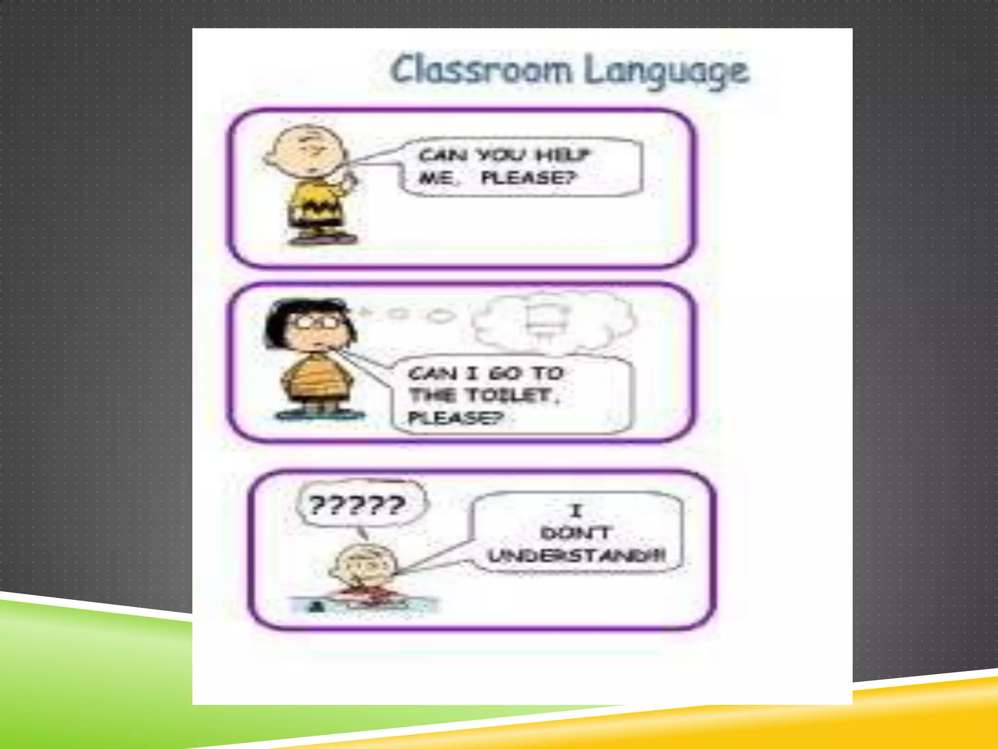 The document provides classroom language and commands for students to learn in both English and Spanish. It includes common phrases used by teachers such as "Sit up!", "Pay attention!", and directions for activities like "Open your book". Students are asked to practice the commands by matching them to their Spanish translations and ordering classroom language questions from most to least common. The goal is for students to understand and follow the typical instructions and exchanges used in the classroom.