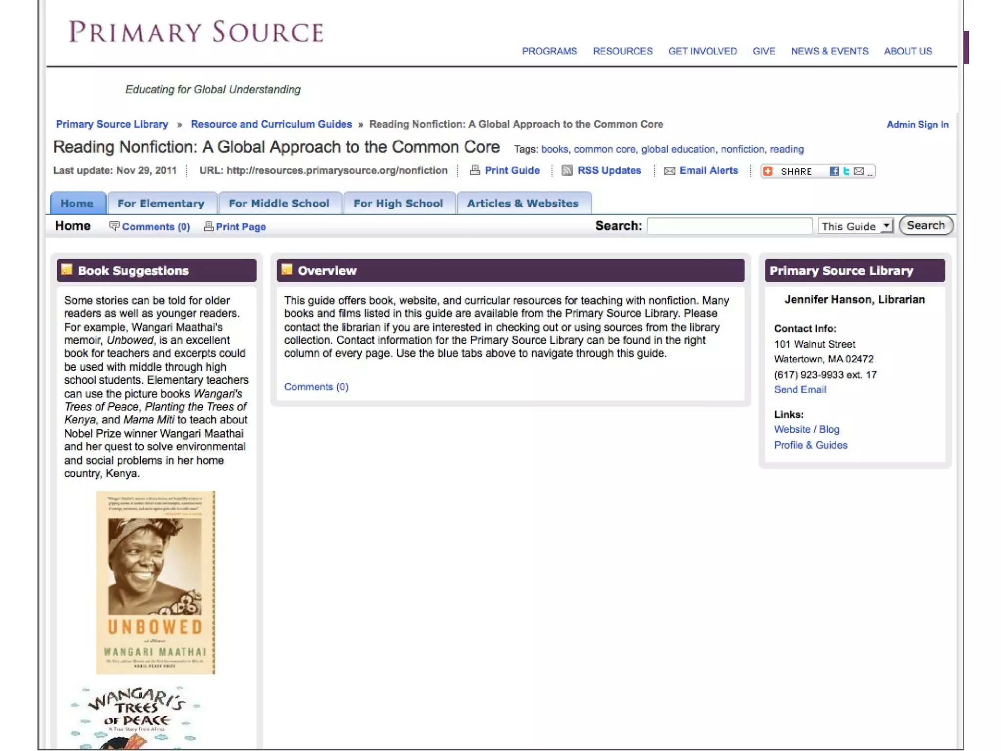 The document discusses strategies for integrating global content into middle school classrooms to meet Common Core standards. It provides an overview of the Common Core, highlighting skills like critical thinking, analysis of complex texts, and literacy across genres. Examples are given of using memoirs, speeches, images and other informational texts to analyze central ideas, point of view, and integrate visuals with text. Resources for finding international nonfiction are also shared.