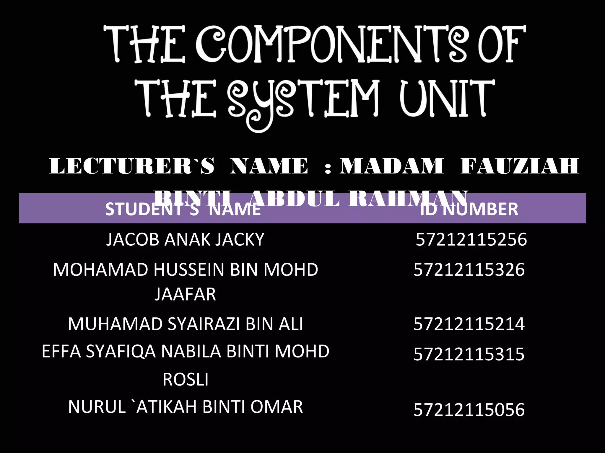 1. It defines the system unit or tower as housing the main internal components like the motherboard, CPU, RAM, and case.