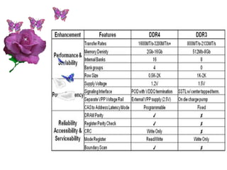 2. It provides a table comparing the differences between DDR1 and DDR2 memory.