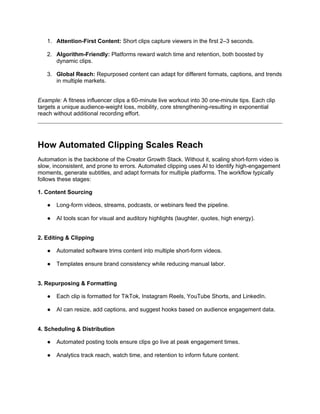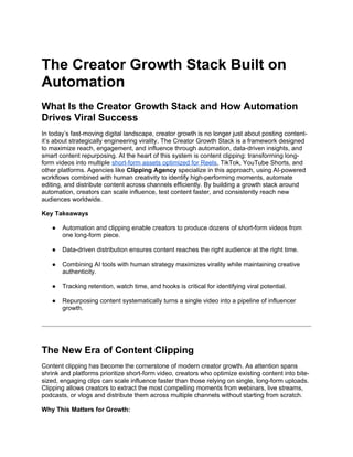 Creator growth no longer depends on posting more content—it depends on building smarter systems. The Creator Growth Stack Built on Automation breaks down how modern creators, brands, and agencies scale faster by combining content clipping, AI-powered automation, and data-driven distribution.