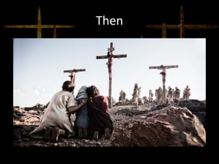 The document discusses the cross both in Jesus' time and now. When Jesus spoke about the cross, he told his followers they must deny themselves, take up their cross daily, and follow him. Now, the cross represents making Jesus your choice and requirement by putting your testimony and service to him before all else in a daily, public way for eternal benefit. Taking up the cross means changing from self-service to Savior-service, and gaining peace, purpose, and a place with Jesus rather than just costs in this life.