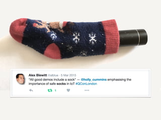 The document discusses the development of a throwable application server called the WebSphere Sphere, employing a PCDuino board, various sensors, and soft circuits. It shares experiences with various challenges faced during its creation, such as hardware connectivity issues and limited compatibility with monitors and power sources. The author emphasizes the need for caution and resources in Internet of Things (IoT) development while highlighting the progress in single-board computers and application servers.
