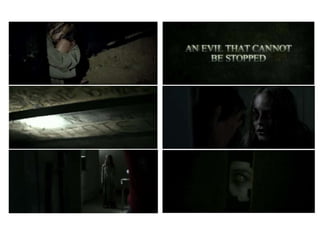 This document analyzes the trailer for the horror film "Kat Scott" through its cinematography, mise-en-scene, sound editing, and adherence to genre conventions. The trailer uses many stereotypical horror conventions like establishing shots of a dark and stormy house, a close-up of a nail being hammered signaling the isolation of something dangerous, and an unsettling non-diegetic singing sound played during scenes of rising tension. The editing starts slow but speeds up after a padlocked door is opened to release a satanic child, creating a dramatic montage. Overall the trailer aims to scare the target 18+ horror genre audience through its use of binary oppositions and familiar horror tropes.