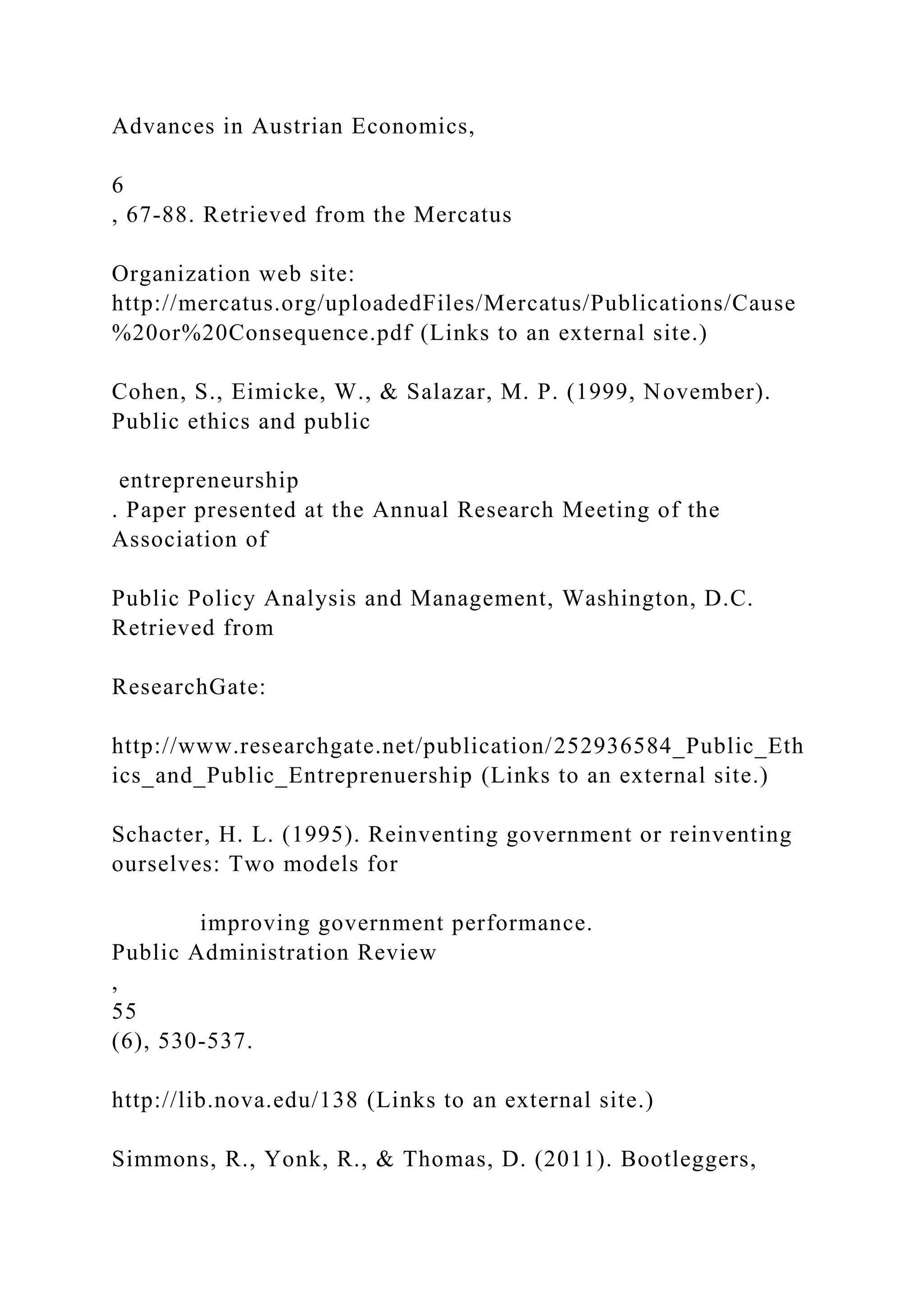 This document provides a reading list of articles related to entrepreneurship, risk, and ethics in governance. The articles discuss whether public sector workers are more risk averse than private sector workers, the types of entrepreneurship as productive, unproductive or destructive, entrepreneurship as a cause or consequence of development, the relationship between public ethics and entrepreneurship, models for improving government performance, and a critique of regulatory politics and entrepreneurial governance. The document concludes by asking for an essay response on the critique of entrepreneurial governance in public management.