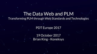 The document discusses transforming Product Lifecycle Management (PLM) systems through the use of web standards and technologies, emphasizing the importance of data integration to enhance decision-making and collaboration in engineering. It highlights the challenges of data integration due to varying formats and proprietary systems, proposing the web as a solution with its open standards and no vendor lock-in. Key takeaways include the benefits of a 'data web' that utilizes standardized REST APIs and RDF for linking disparate data sources, which can improve traceability and transparency in engineering projects.