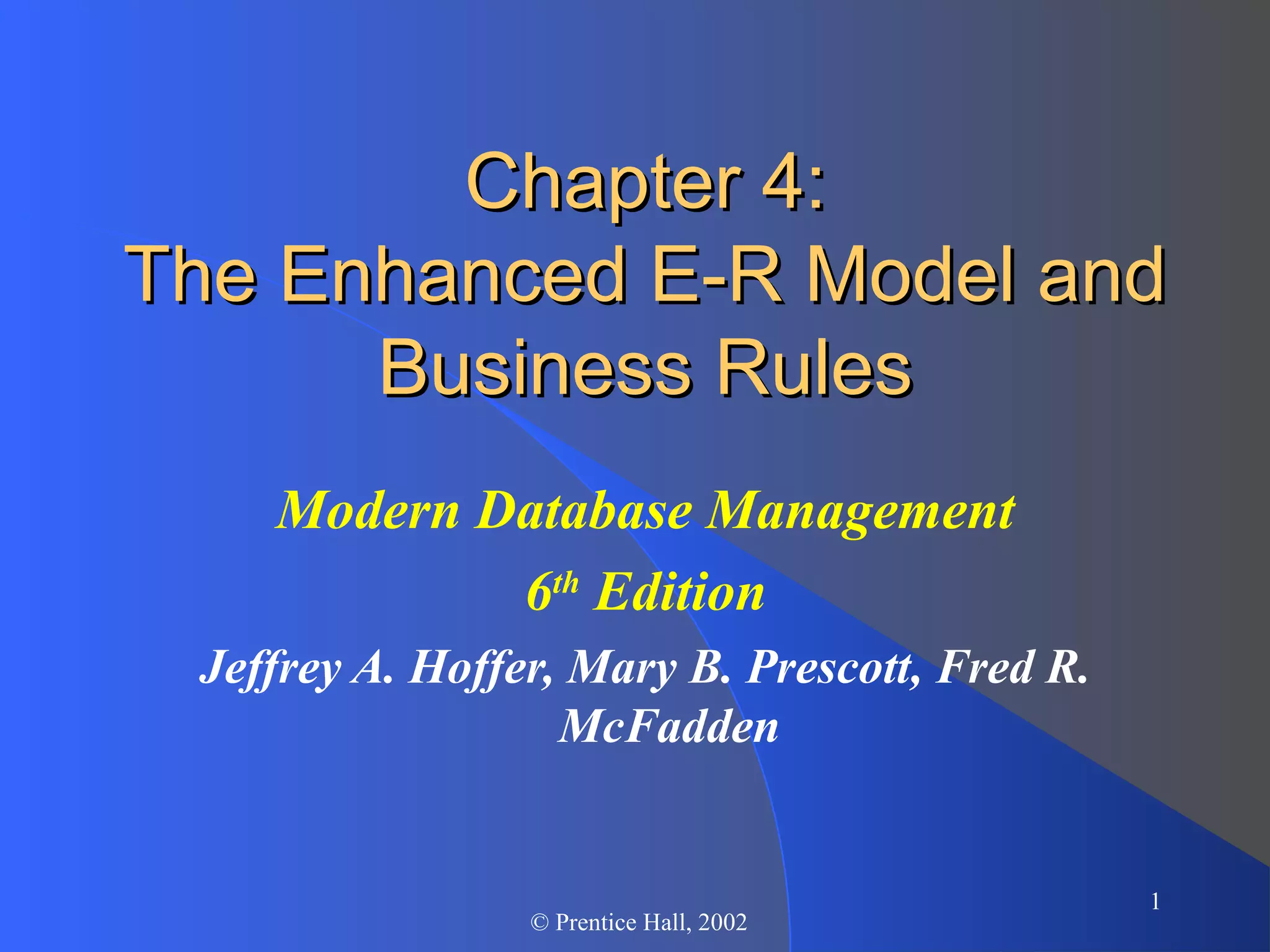 This chapter discusses supertypes and subtypes in entity relationship modeling. It defines supertypes as generic entity types that have relationships with one or more subtypes. Subtypes inherit attributes from their supertype and can have additional unique attributes. The chapter covers total and partial specialization, disjoint and overlapping subtypes, and using subtype discriminators. It also discusses modeling business rules and using entity clusters to improve readability of large models.