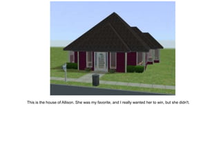 This document provides updates on multiple generations of the Davis legacy family in the Sims. It summarizes the life events like falling in love, marriages, pregnancies, and births of 13 different Sims family members across 3 generations. While some Sims had green-skinned alien babies in previous playthroughs, the babies described in this update all had normal human appearances. The document concludes by announcing that Claire won the heir vote to become the new matriarch of the Davis legacy.