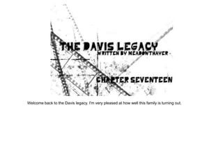 The document summarizes the lineage of the Davis legacy family in the Sims 4. It describes the marriage of Sara and Douglas Davis and the birth of their six children - John, Allison, Brian, Claire, Andy, and Carl - who were each named after a character from the movie The Breakfast Club. It provides updates on the children aging up and pursuing careers and higher education. Sara and Douglas eventually age into elders while their children establish their adult lives before a new generation is chosen to continue the legacy.