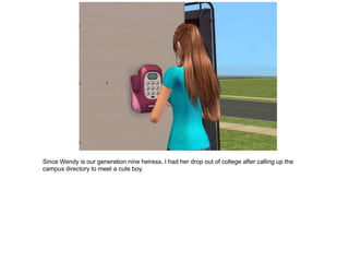 This document summarizes the final chapter of the Davis legacy in Sims 3. It introduces the 10th generation heirs Lucy, Prudence, Jude, and Max. It also provides a brief update on the spare heirs Erin and Ashlyn and their families before concluding the Davis legacy. The document encourages the reader to check the author's Sims page and SimMania forum for more Sims stories and legacies.