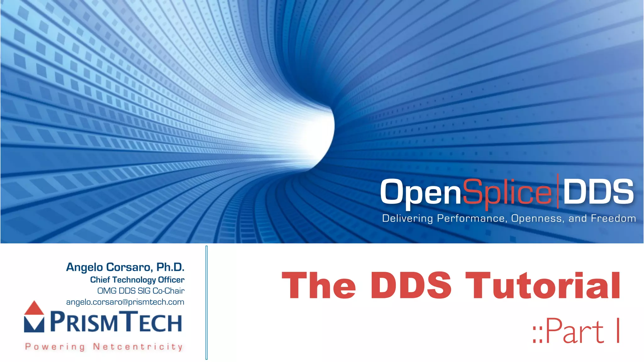 The document provides an overview of the Data Distribution Service (DDS) and its application in real-time data distribution, particularly in defense and aerospace. It covers concepts such as topic definitions, key management, partitions, data writers, and readers, utilizing OpenSplice DDS standards. The tutorial also includes information on how to compile topic types, register topics, and manage data writing and reading within the DDS model.