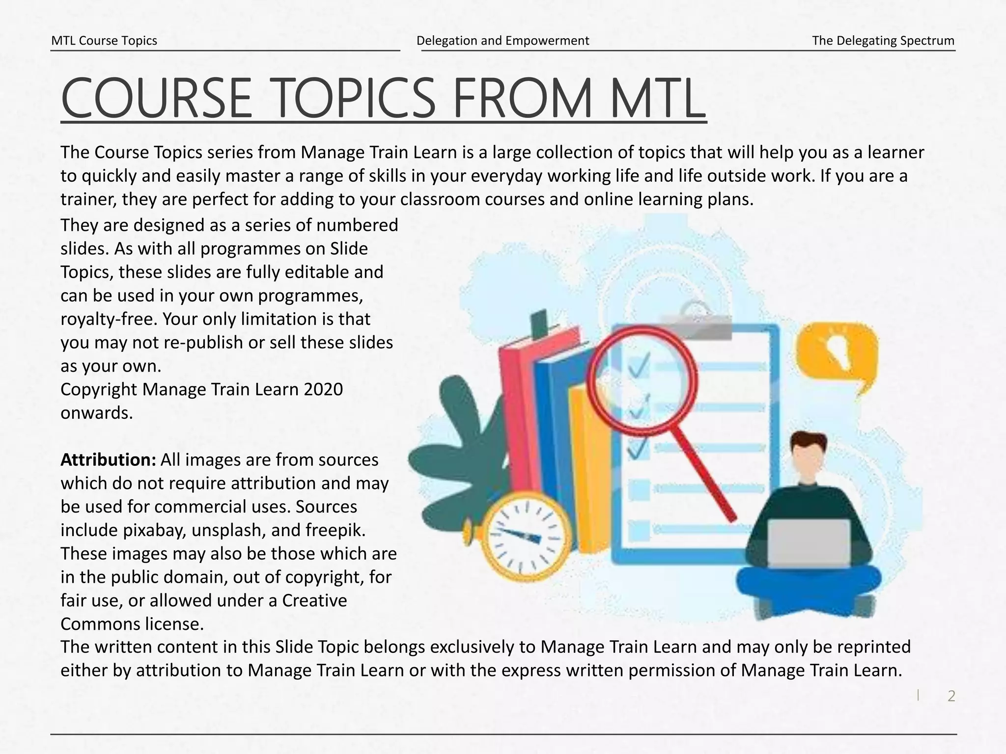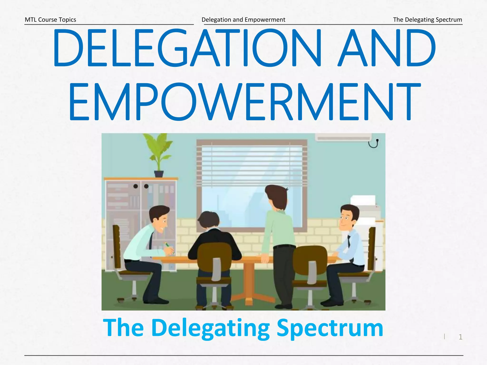 The document outlines the concept of delegation and empowerment in management, highlighting different styles and types of delegation, including ambassadorial, allocating, ownership, developmental, and stewardship delegation. It discusses the benefits and challenges of delegation, managers' reluctance to delegate, and strategies for effective delegation to develop employee skills and promote ownership. Finally, it emphasizes the importance of creating a supportive environment to foster growth and accountability within teams.